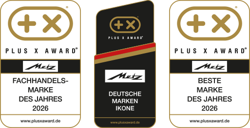 Der Plus X Award ‚Fachhandelsmarke des Jahres‘ ging 2026 in der Kategorie TV bereits zum achten Mal in Folge an Metz. Überdies wurde das Unternehmen als ‚Deutsche Marken Ikone' geehrt. Hiermit würdigt der PLUS X AWARD jährlich eine verdiente Marke für ihre herausragenden Produkte und Leistungen. Zusätzlich erhielt Metz 2026 die Auszeichnung ‚Beste Marke des Jahres‘, mit der der PLUS X AWARD nur wenige Marken für ihre herausragende Gesamtdarbietung würdigt.