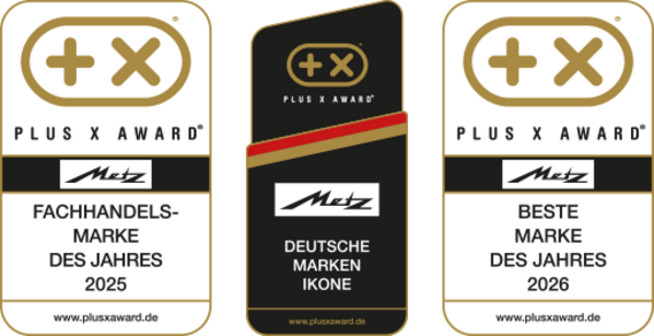 Il Plus X Award per "Marchio specializzato dell'anno" nella categoria TV è stato assegnato a Metz per il settimo anno consecutivo nel 2025. L'azienda è stata inoltre insignita del titolo di "Icona del marchio tedesco". Con questo premio, il Plus X Award premia ogni anno un marchio meritevole per i suoi prodotti e servizi eccezionali. Nel 2026, Metz ha ricevuto anche il premio "Miglior marchio dell'anno", che il Plus X Award conferisce solo a pochi marchi selezionati per le loro eccezionali prestazioni complessive.